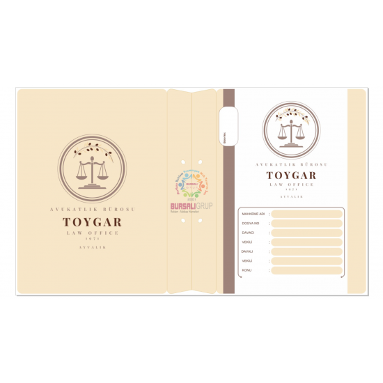 Avukat dava dosyası; avukatlar ve hukuk büroları için özel olarak tasarlanan, genellikle A4 ölçüsünde üretilen karton dosyalardır. Dosya üzerinde büro adı, logo, iletişim bilgileri ve dava alanları bulunabilir. Bu sayede her dosya kurumsal bir kimlik kazanır.
